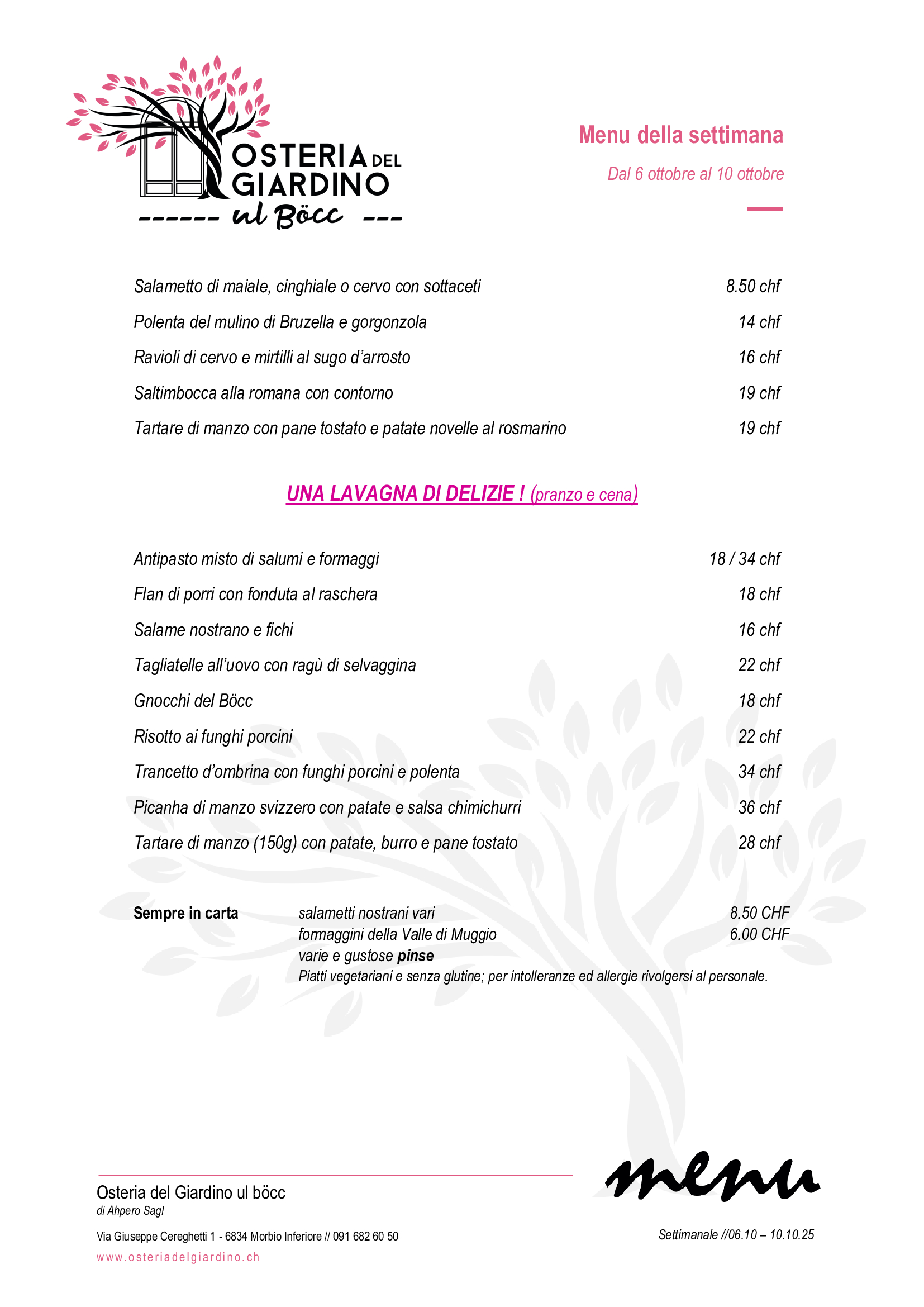 All’Osteria del Giardino crediamo che la vera convivialità nasca dalla semplicità e dalla passione per il buon cibo. La nostra è una cucina genuina, fatta di ingredienti freschi e locali, ricette casalinghe e una particolare attenzione alle tradizioni del territorio. Ogni piatto racconta una storia di sapori autentici, arricchiti dal calore di un ambiente familiare.